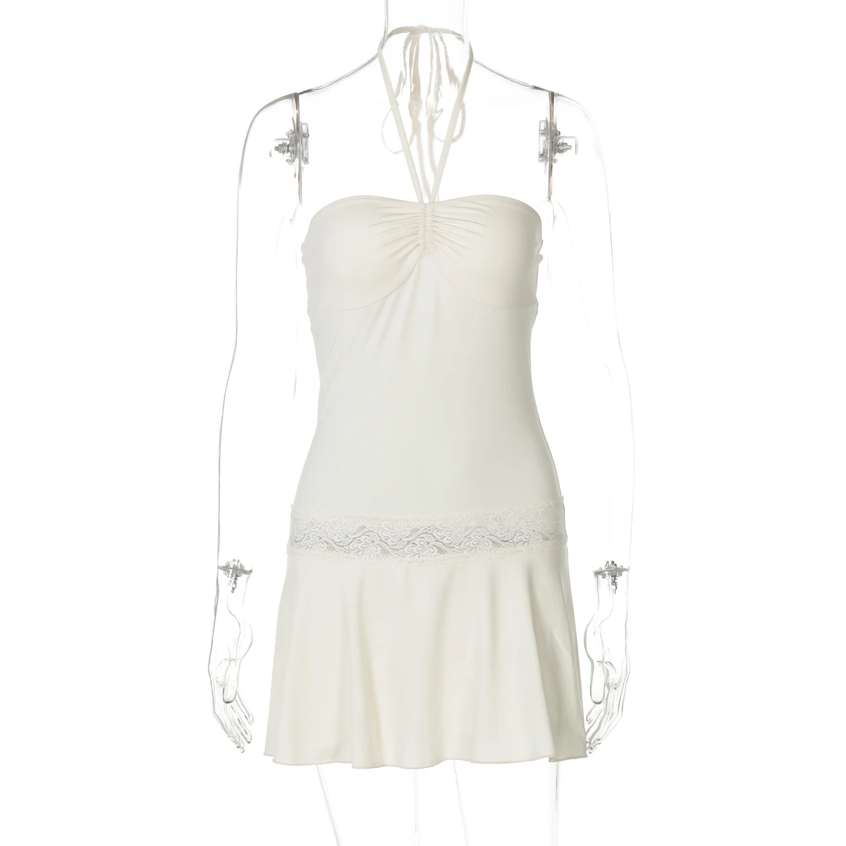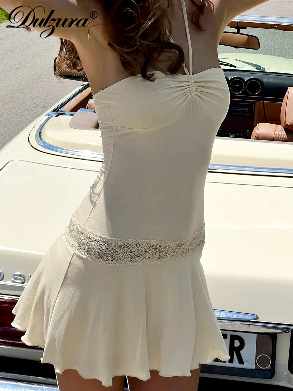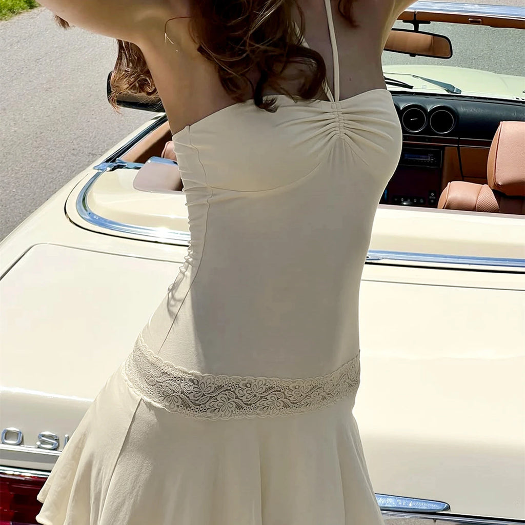 Com comprimento curto, decote halter e costas abertas, ele traz liberdade de movimento e um visual leve, ideal para praia, viagens, resorts e passeios de fim de tarde.
