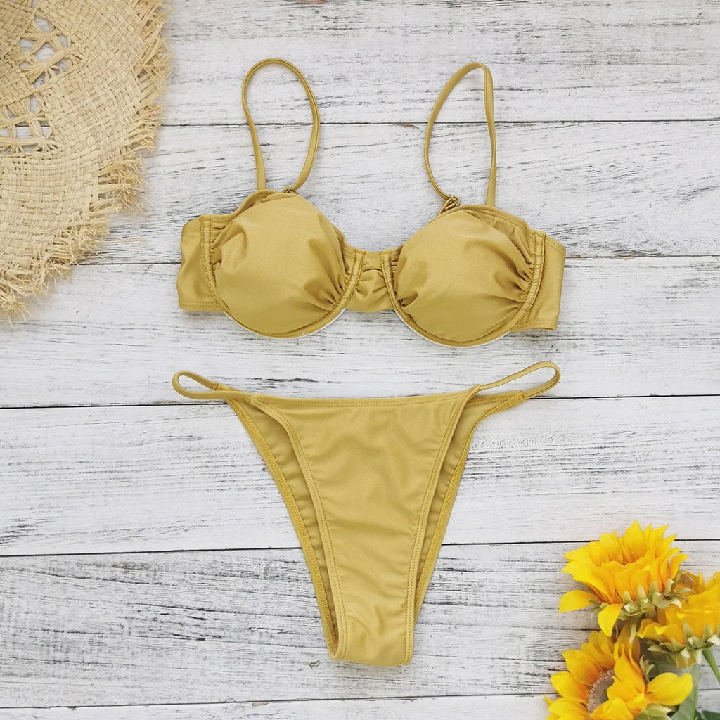 Confeccionado em poliéster leve, o conjunto possui modelagem fiel ao tamanho, sem aro, com bojo para melhor sustentação e segurança. O design em cor lisa traz versatilidade, permitindo diferentes combinações para praia, piscina ou momentos pós-mar.
